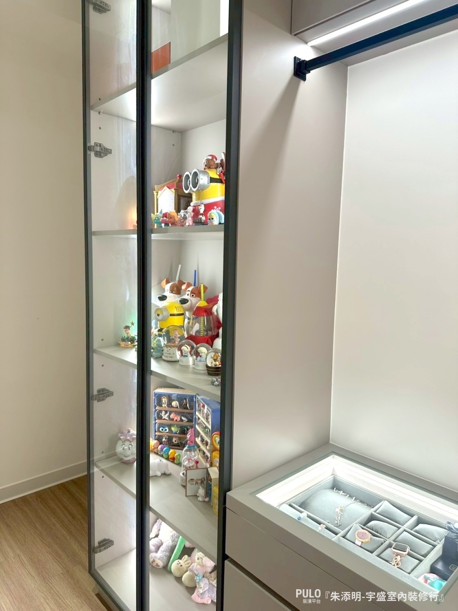 為了讓光線能更自由地穿透,案場中利用了大量玻璃元素與隱藏門設計,在維持空間平順感的同時,也將光源引進室內。